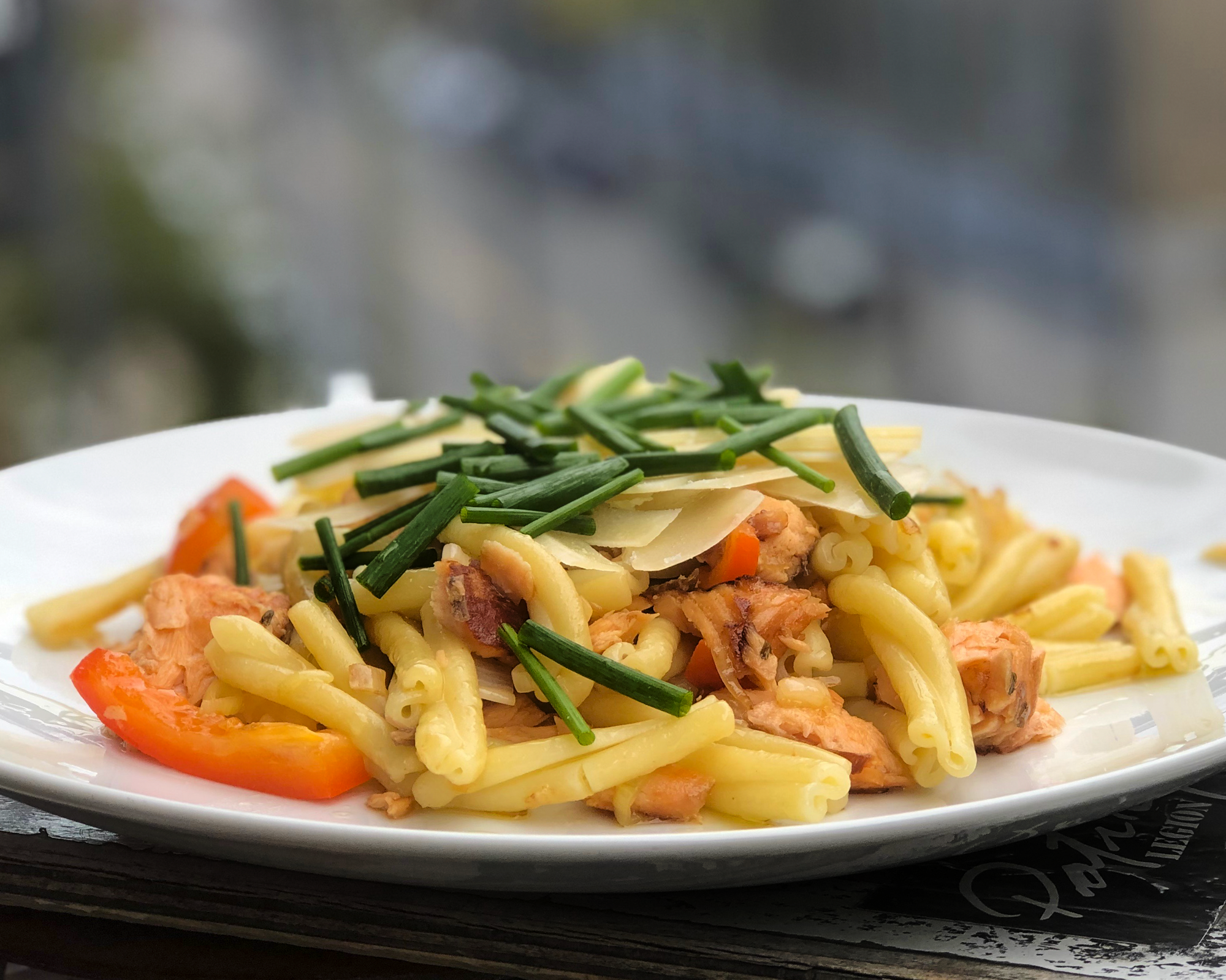 Environ 300 g de saumon fumé à chaud (enlever la peau et le déchirer en morceaux)