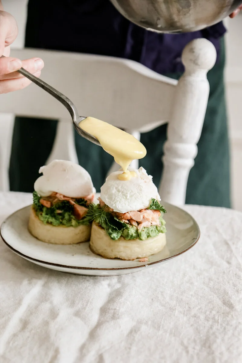 Placez vos crumpets cuits sur une grille de refroidissement et sous un torchon propre. Jusqu’à utilisation. C’est bien meilleur chaud donc je vous conseille de faire cette préparation à la fin, en même temps que la sauce hollandaise.