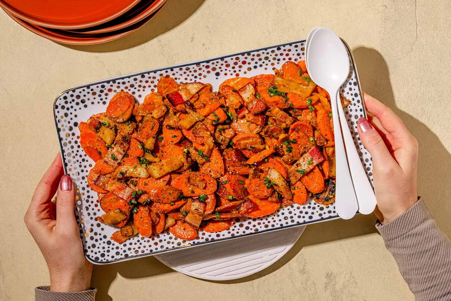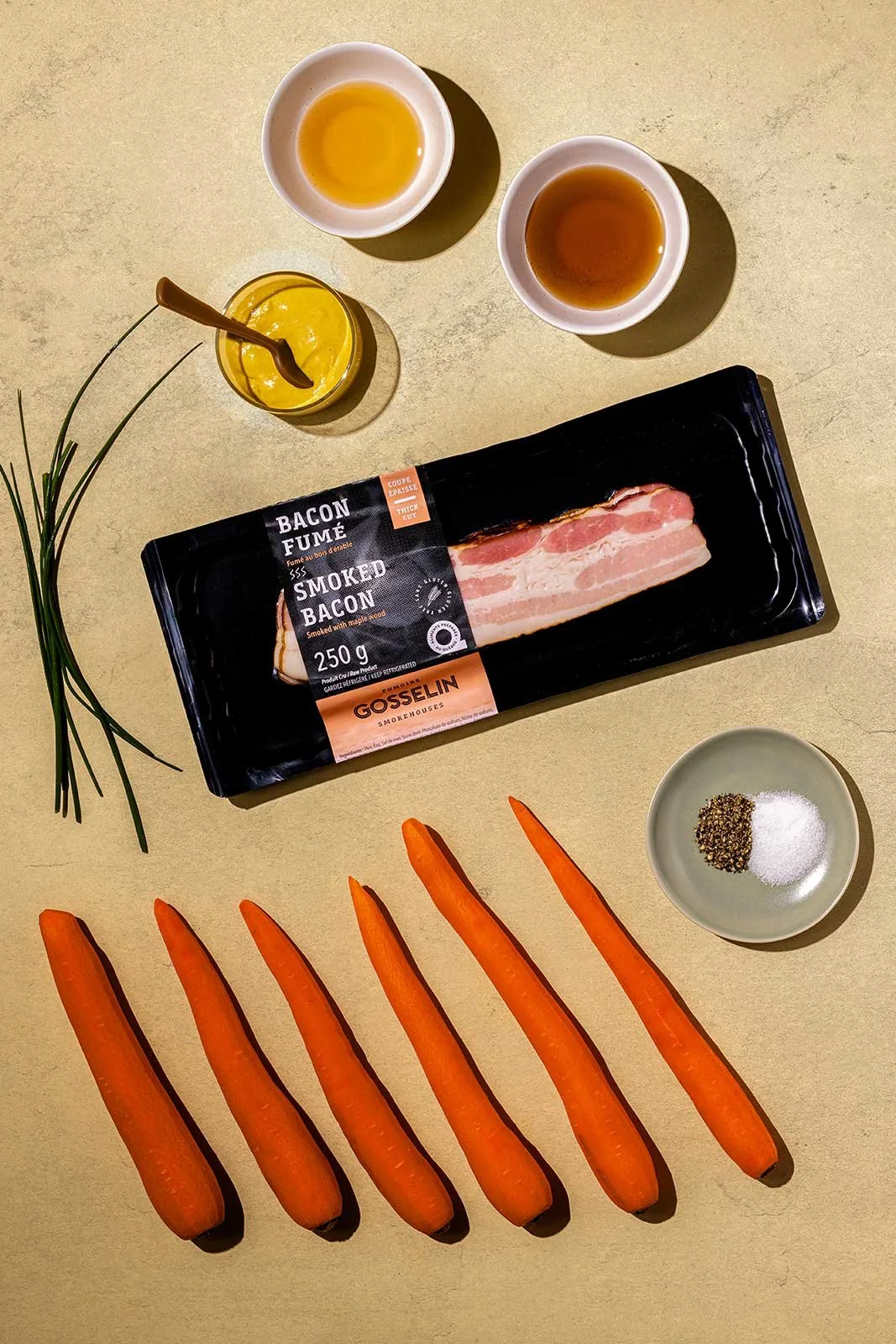 Incorporer les morceaux de bacon, le sirop d’érable, le vinaigre de cidre de pommes, la moutarde de Dijon, le sel et le poivre. Poursuivre la cuisson 2 minutes ou jusqu’à ce que les carottes soient tendres.