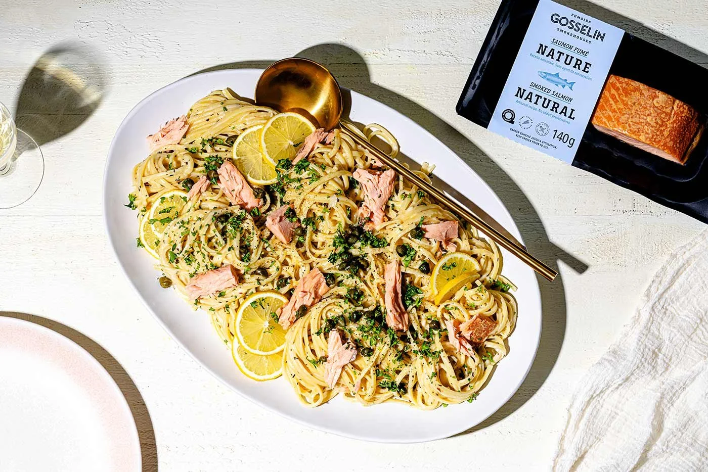 Linguines crémeuses au parmesan, au citron et au saumon fumé